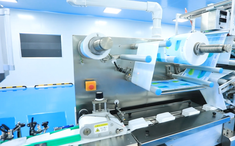 CD-2000H-16L全自動濕巾生產(chǎn)線生產(chǎn)一次性家庭清潔用濕巾或嬰兒濕巾。是由8組原布架1切2帶自動分切,折疊、加藥液、定長度切斷、計數(shù)堆垛、再自動輸送到包裝機(jī)進(jìn)行包裝的機(jī)器。本機(jī)原材料使用不停機(jī)自動換料裝置,減少更換原材料的時間,有效的提高了工作效率,布接頭在線檢測和駁接口在線剔除,增加張力控制與自動糾偏功能。所有過程從原料到包裝成品都在機(jī)器上完成,生產(chǎn)過程快速、衛(wèi)生。主折疊機(jī)與包裝機(jī)可以自動連接使用又能在生產(chǎn)特殊規(guī)格產(chǎn)品時分開獨(dú)立使用,能使客戶最大限度利用機(jī)器、產(chǎn)生最大的效益。